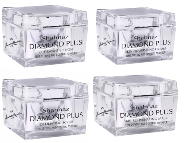 Shahnaz Husain's Diamond Plus Rehydrant Lotion is enhanced with organic extracts combined with ash of Diamond. The formulation provides intensive moisturisation and age control benefits. Containing extracts of carrot seed, date, basil, aloe vera juice and grape fruit, with Vitamin-E and honey, it helps to hydrate the skin powerfully and restore its smooth youthful beauty. Improves moisture retention and leaves the skin soft and glowing.