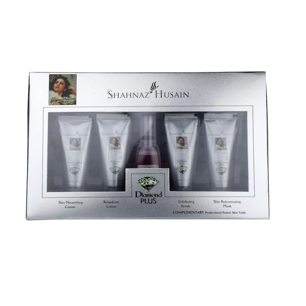 Shahnaz Husain Diamond Skin Revival Kit 10gx4 (D.Nourishing Cream, D. Scrub, D. Lotion, D. Rejuvenating Mask) and Professional Power Skin Tonic 15ML