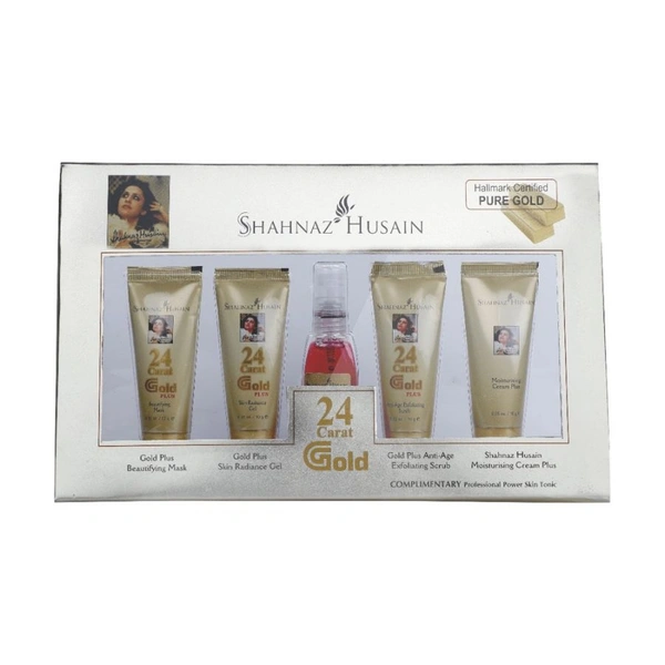 Shahnaz Husain 24 Carat Gold Kit consists of Gold Plus Skin Radiance Gel, Moisturising Cream, Gold Plus Beautifying Mask, Anti-age exfoliating scrub, all of which help the skin to improve its texture and delays the visible ageing signs, giving the skin a youthful glow.