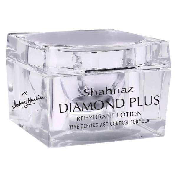 Shahnaz Husain's Diamond Plus Rehydrant Lotion is enhanced with organic extracts combined with ash of Diamond. The formulation provides intensive moisturisation and age control benefits. Containing extracts of carrot seed, date, basil, aloe vera juice and grape fruit, with Vitamin-E and honey, it helps to hydrate the skin powerfully and restore its smooth youthful beauty. Improves moisture retention and leaves the skin soft and glowing.