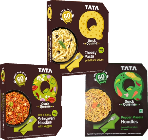 Tata Quick Quisine Cheesy Pasta With Black Olived - 290Gm & Hot & Spicy Schezwan Noodles With Veggies - 290Gm & Pepper Masala Nooodles - 280Gm